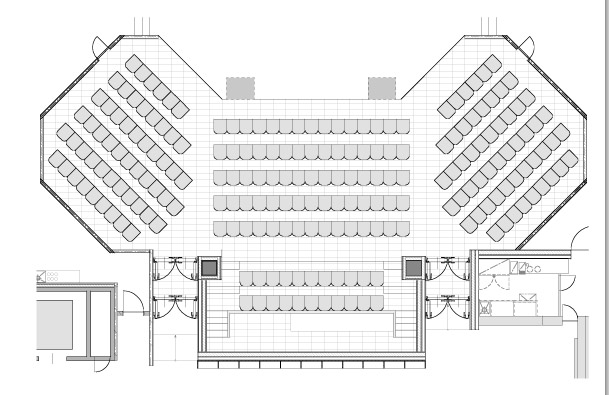 (ステージから見て右側 55席、中央前5列 75席、中央奥2列 22席、左側 55席)