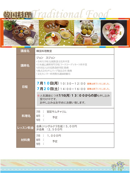 韓国語教室「ハングルナラ」で色々な文化講座が行われます!