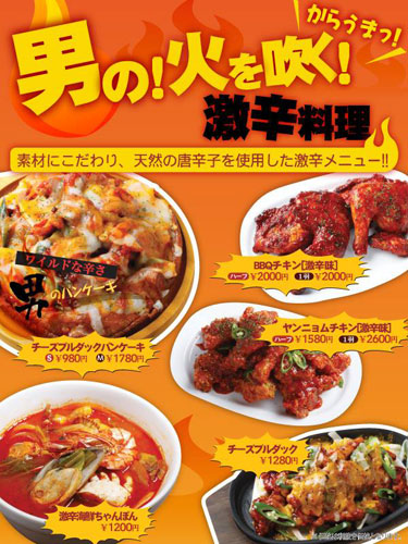 「タクカフェ」のメニューから激辛料理をピックアップ!想像するだけで生唾ゴックン。使っている唐辛子は、天然の唐辛子を使用。もちろん辛いだけではなく、からうまです♪いつのまにか体もポカポカ♪女性の方達も辛いものが好きな方なら是非お試しくださいね♪ただし、責任は持てません!さぁ、あなたは、この辛さに耐えられるか!?