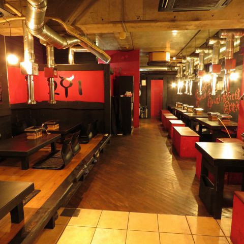 店内は赤と黒を基調にした近代的なレイアウトで広々とした雰囲気で、