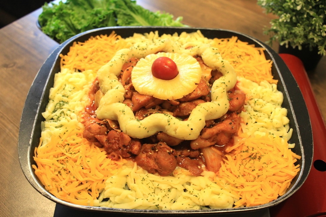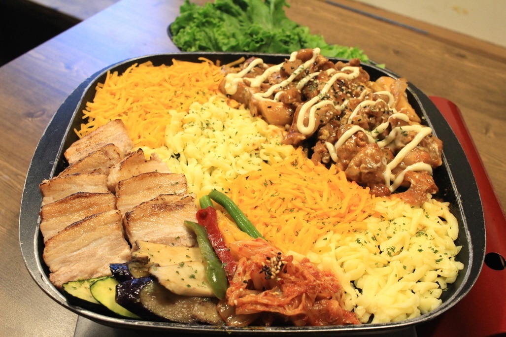 溢れるばかりのたっぷりチーズがあるので、サムギョプサル全体に贅沢に絡めて堪能出来ます。