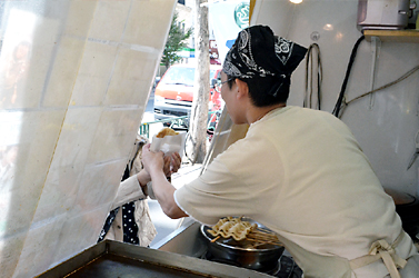 代表が自ら粉をブレンドして作るオリジナルホットク!!