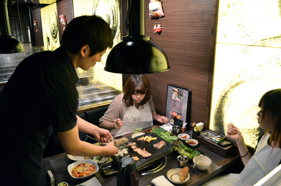 各テーブルで自分で焼きながらご堪能頂けます!もちろんソフトドリンク飲み放題もついてます♪