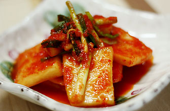 宮廷料理のキムチの一つです。大根のキムチで、大根をさいの目に...