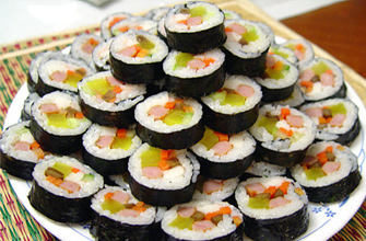 韓国風海苔巻 酢飯を使わず、ごま油と塩で味付け。 具には...