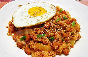 ニンジン、タマネギなどの野菜を豚肉やハムなどと炒めてご飯を加...