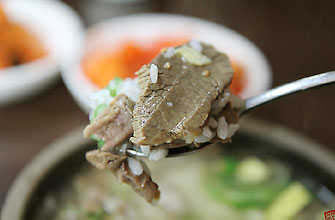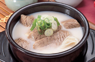 ソルロンタンは牛の足の骨や臀部の肉、あばら骨、足の筋肉、牛舌...