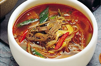 ユッケジャンは夏場の疲れに効く栄養食の一つで、牛肉のあばらの...