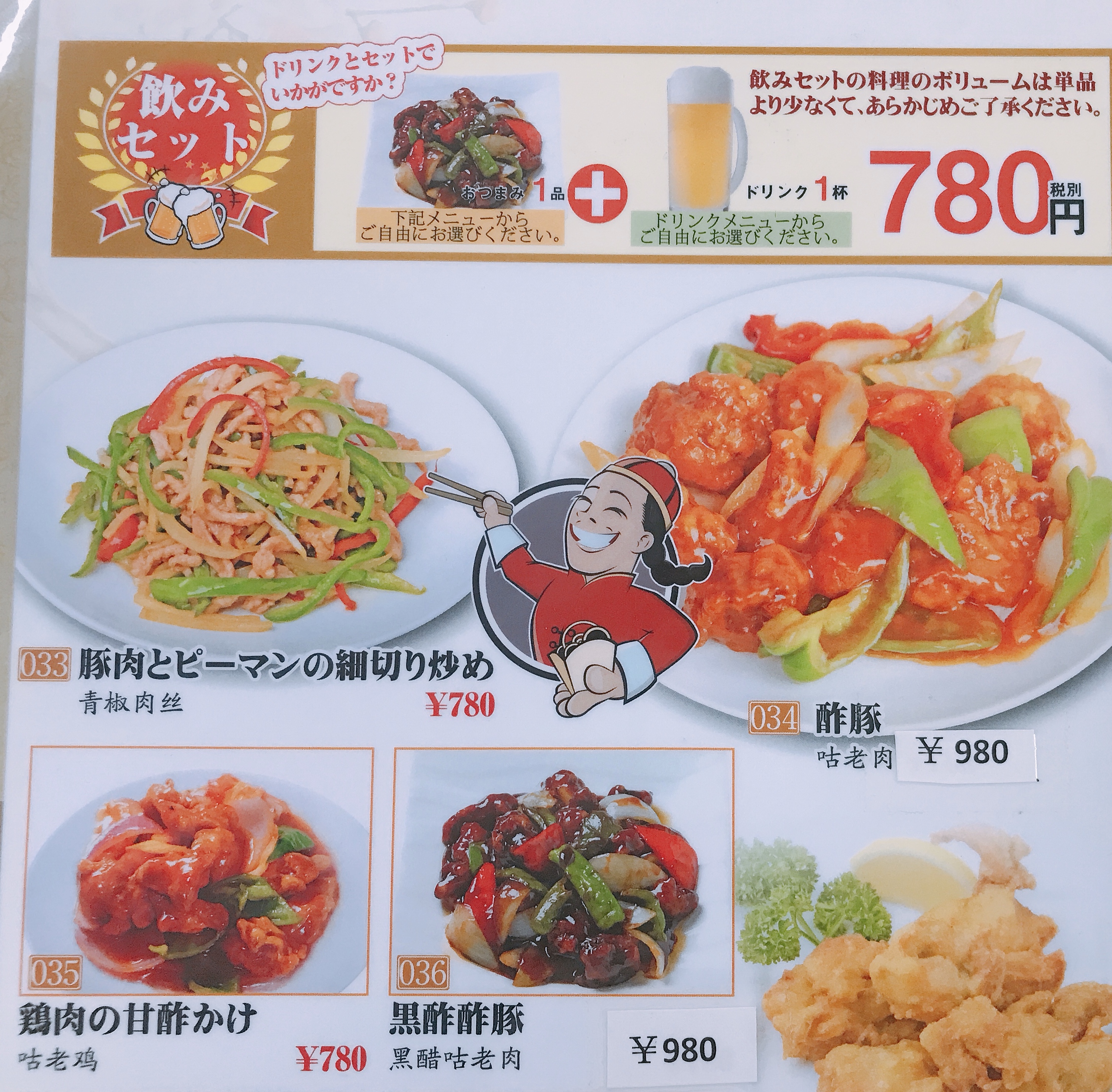 | コース料理 | あり おつまみ1品+ドリンク1杯(680~780円) |