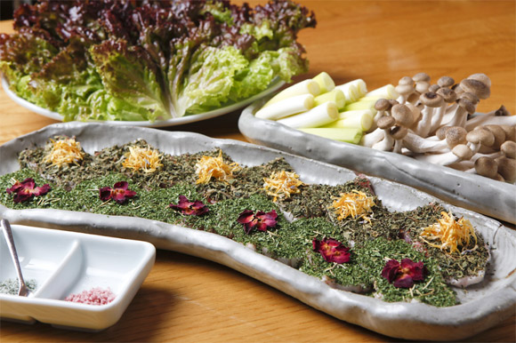 | 珍しい料理 | ハーブ豚三枚バラ・コチュジャンチヂミ・花ジョン(お花のジョン)・塩味チャプチェ |