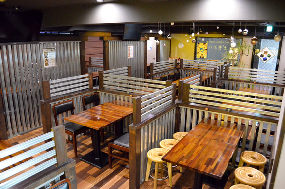モットーは「チキンとビールを飲みながらK-POPを楽しめる空間」の提供で、木材を基調とした落ち着いたおしゃれな店内です。